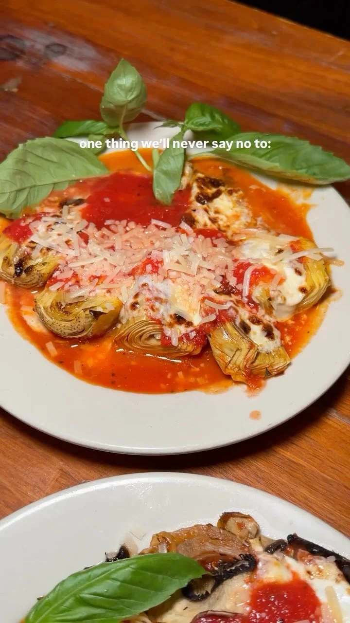 Our Artichoke Special is always a good idea 😍 Stem-on, wood-fired imported Italian artichokes with house sauce and melted mozzarella, topped with 18-month-aged parmesan and fresh basil 🌿